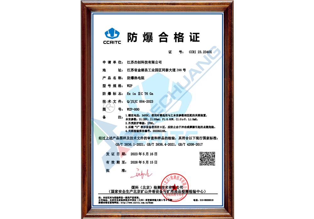 ·取得热电阻、热电偶防爆证