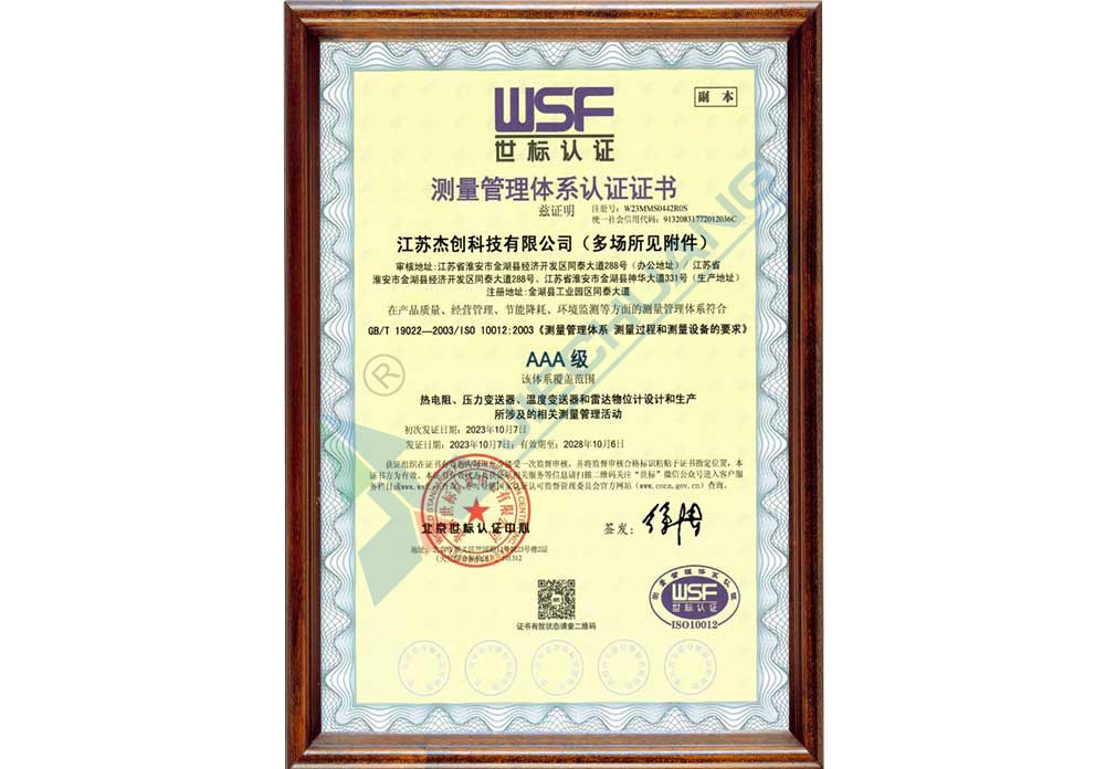 ·获得江苏省质量技术监督局颁发“计量保证确认证书”