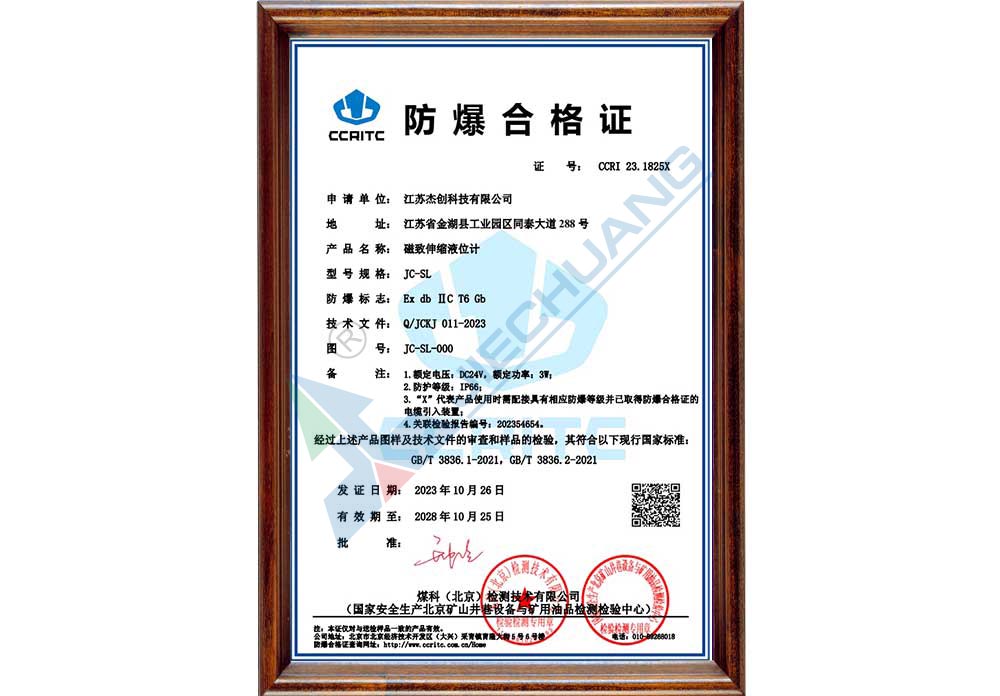 ·取得液位开关、投入式液位计防爆证