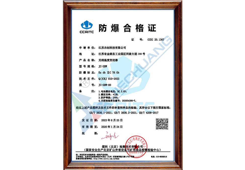 ·取得一体化温度变送器防爆证